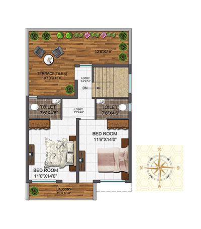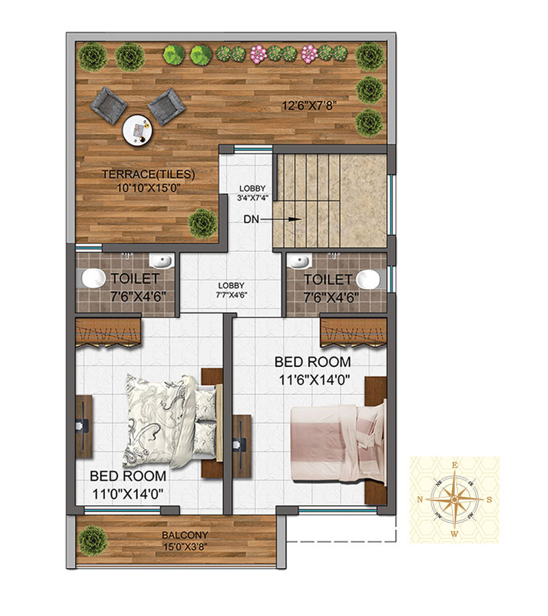 Super Built up Area : 1600 sq.ft.