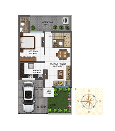 On 40 feet / 60 feet road + Corner + Garden Front House :