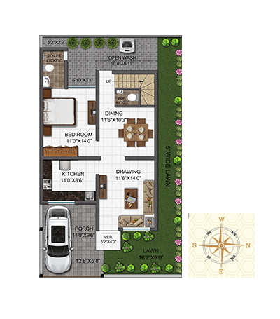 On 40 feet / 60 feet road + Corner + Garden Front House :